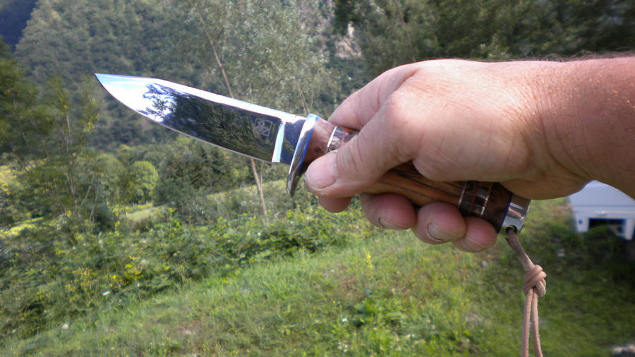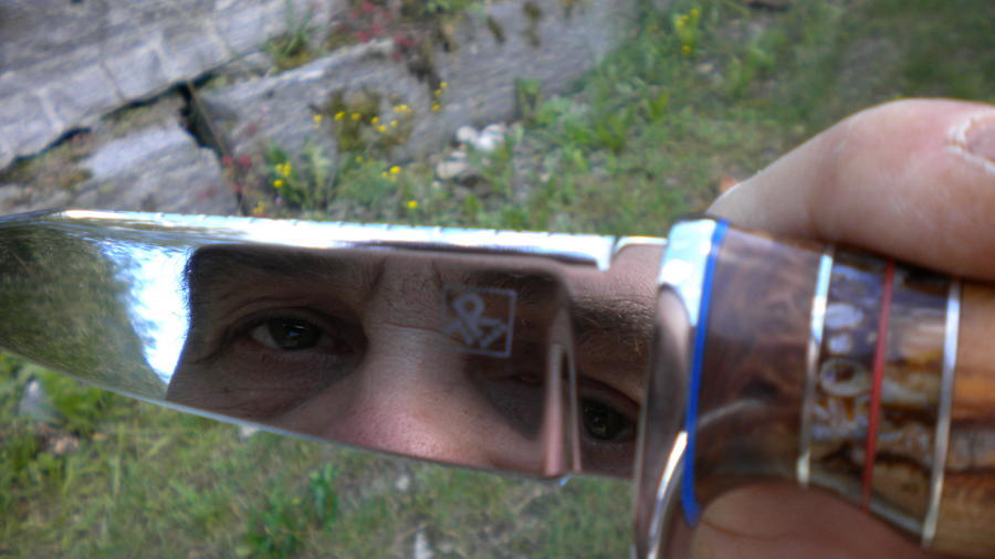 Naziv noža "mamutski kutnjak" sam dao iz razloga što je bio pripremio dvije plocice od mamutovog zuba za neki preklopni nožić, ali moja nezgoda mi je jedan od dviju pločica palo na pod sa visine od 50 cm i puklo na rasponu jedne trećine, tako san za preklopni nožić od datog zuba propao.Medjutim ideja nije propala ali ovog puta je iskorišćena za dršku noža !