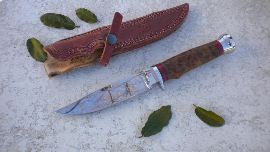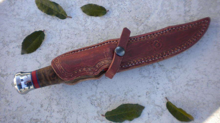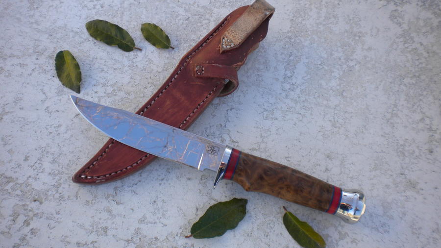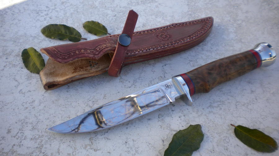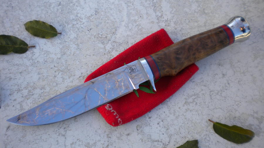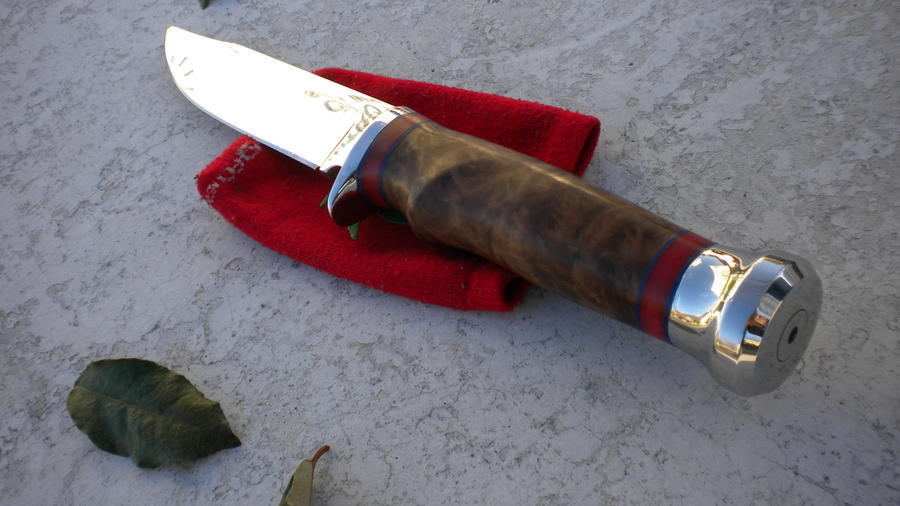 Rukobran i jabučica AISI 416 sa crvenim i plavim vulkanfiberom.