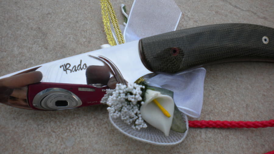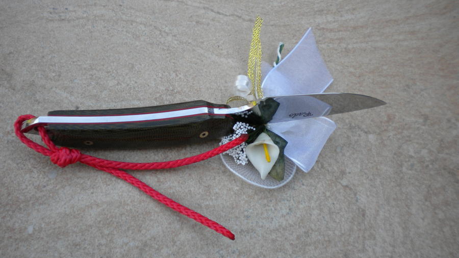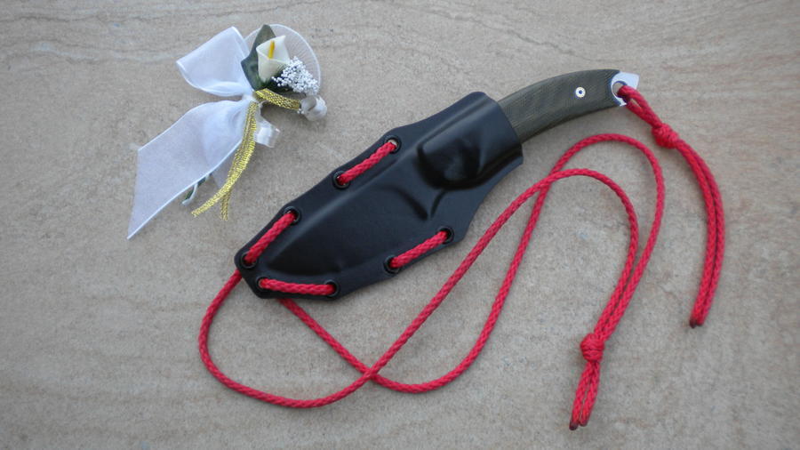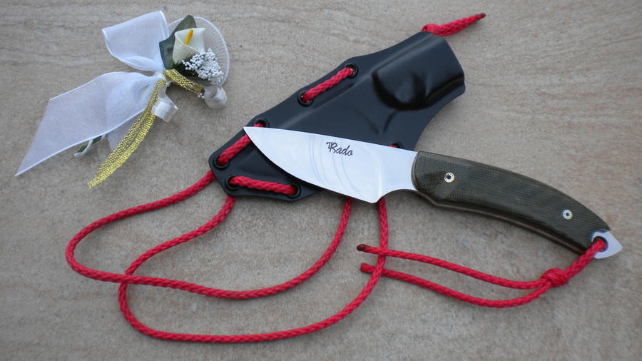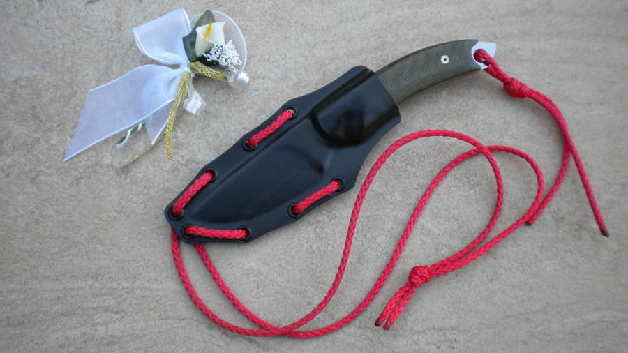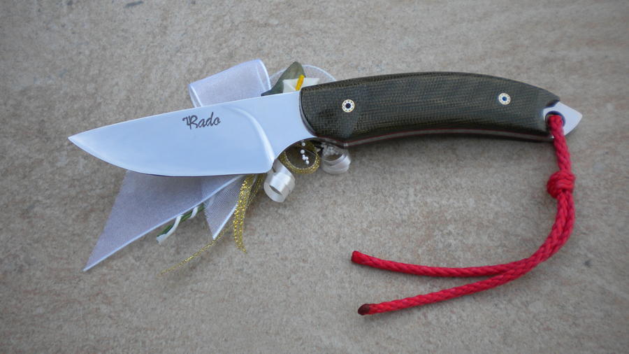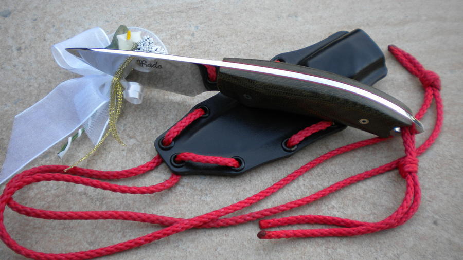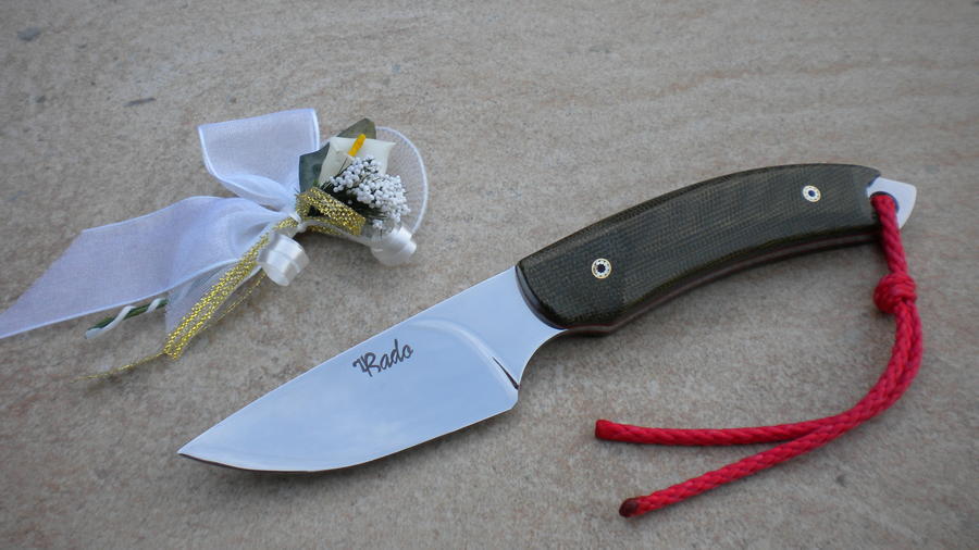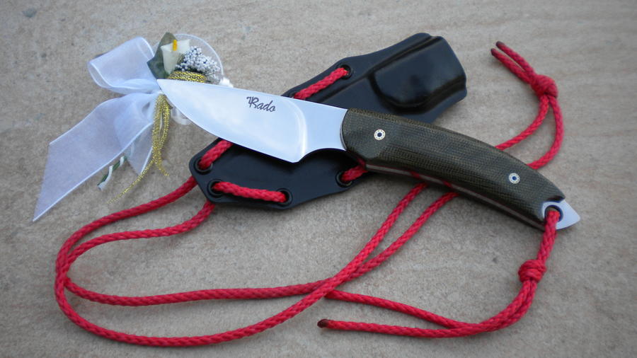 Ukupna dužina: 175 mm, Sječiva: 75 mm, Visina sječiva: max 28 mm, Debljina sječiva: 3.5 mm, Sječivo: ugljenični čelik C70, Drška noža: mikarta /zelena/,sa ukrasnim zakovicama i crvenim vulkanfiber-om. Futrola: kydex.