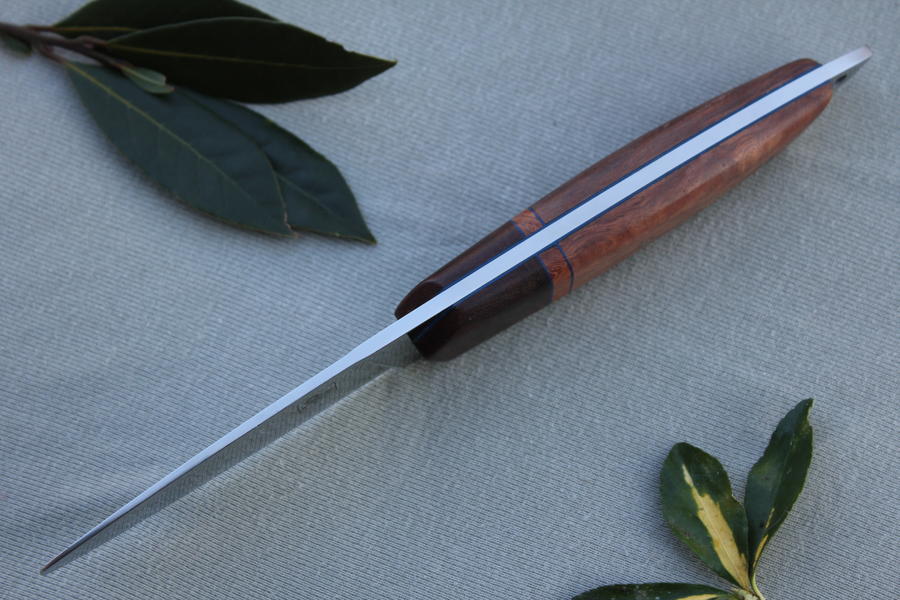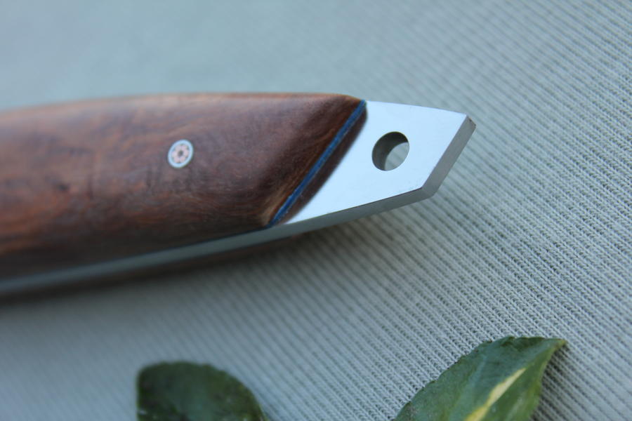 Vrh sječiva je zaobljeno i nije naoštreno. Sječivo je naoštreno od rikasa i do početka zaobljnja vrha.