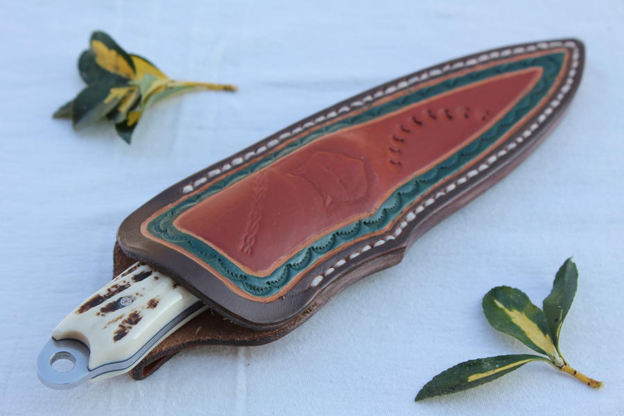 Futrola od biljne štavljene kože, ručno rađena i farbana.