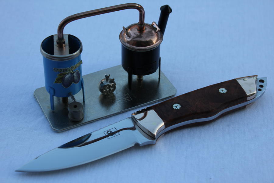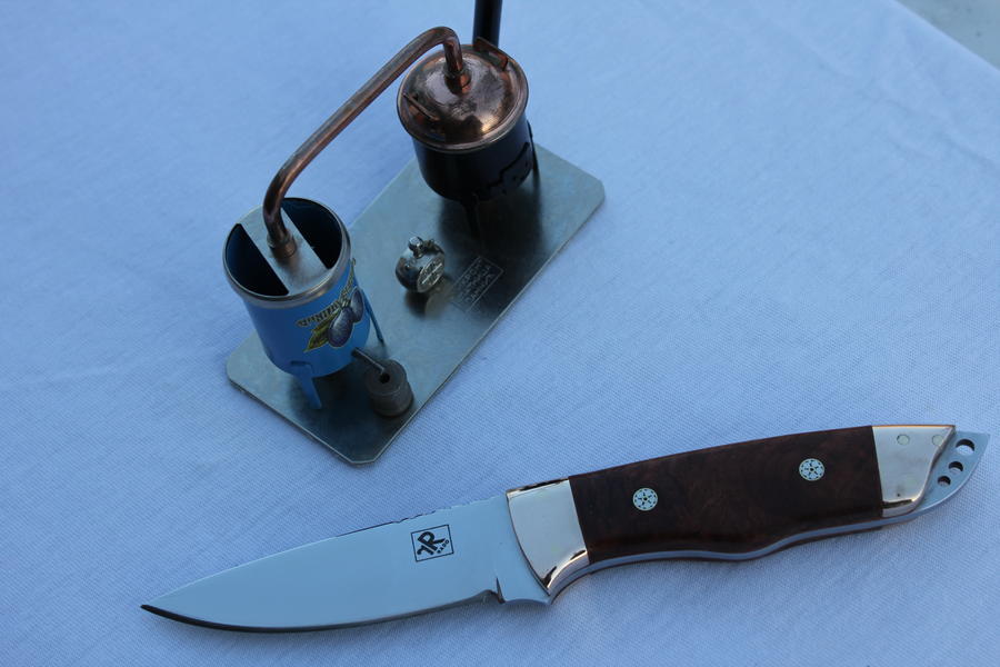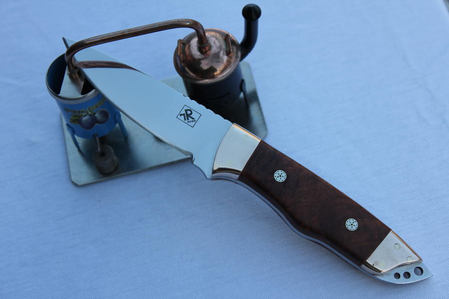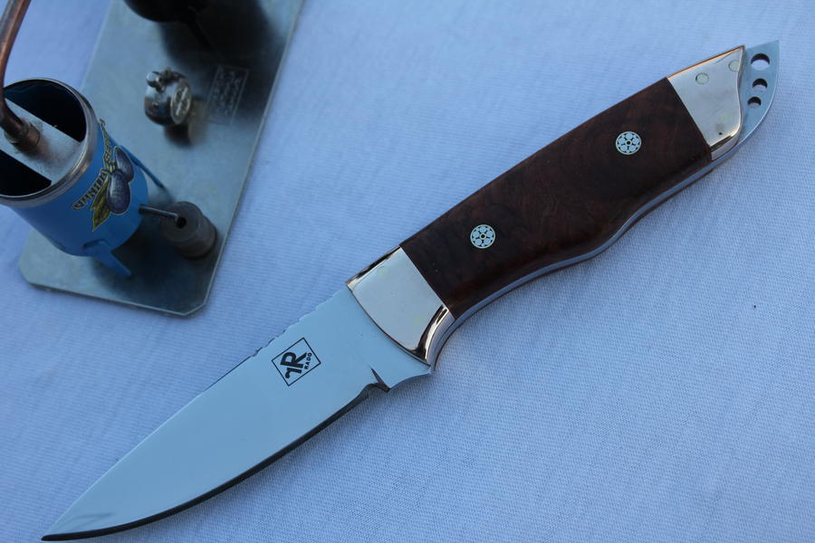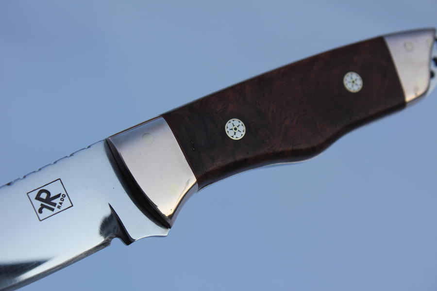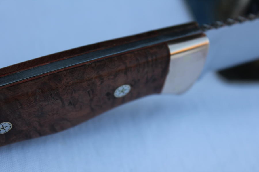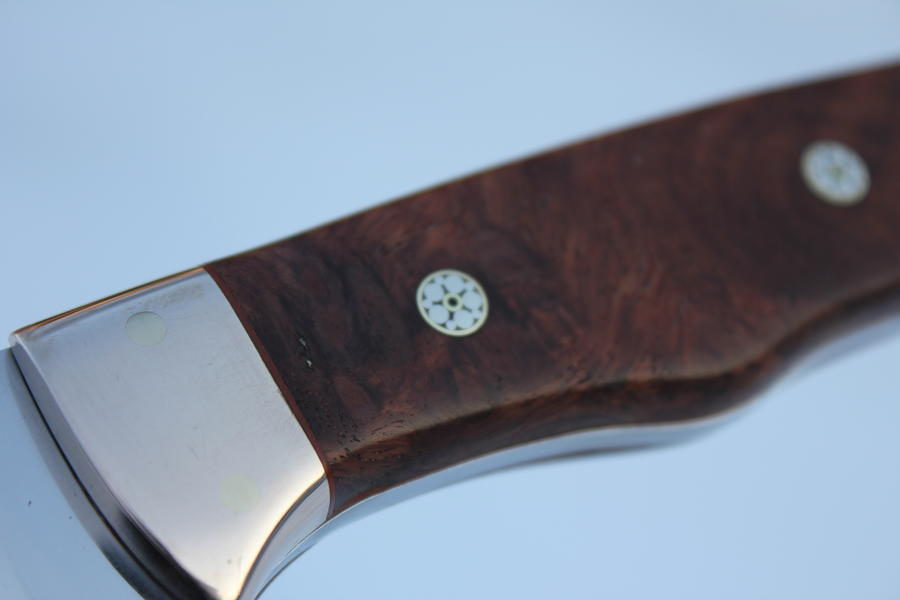 Drška noža amboina (korijen nara), fiksirano sa mosaico pins, bolster bronza