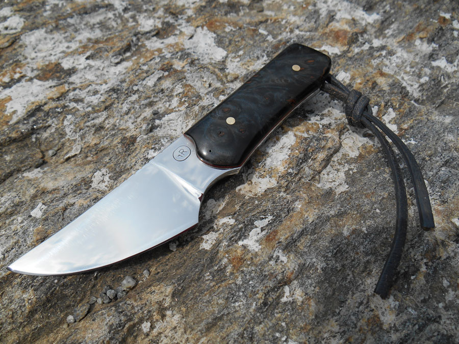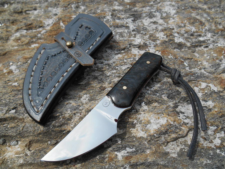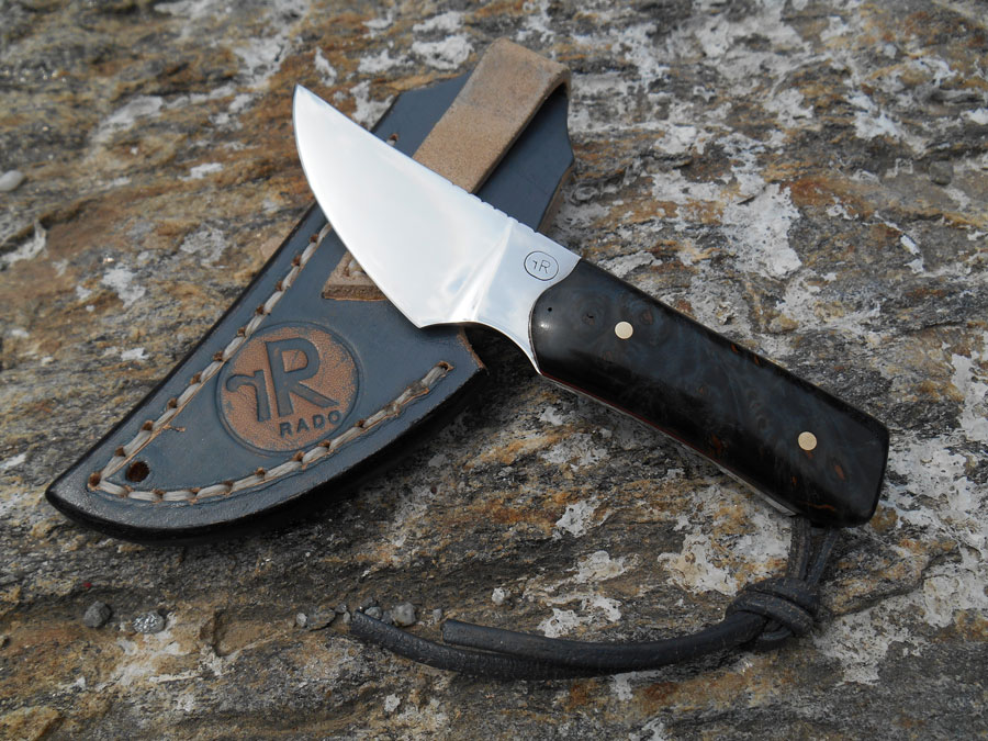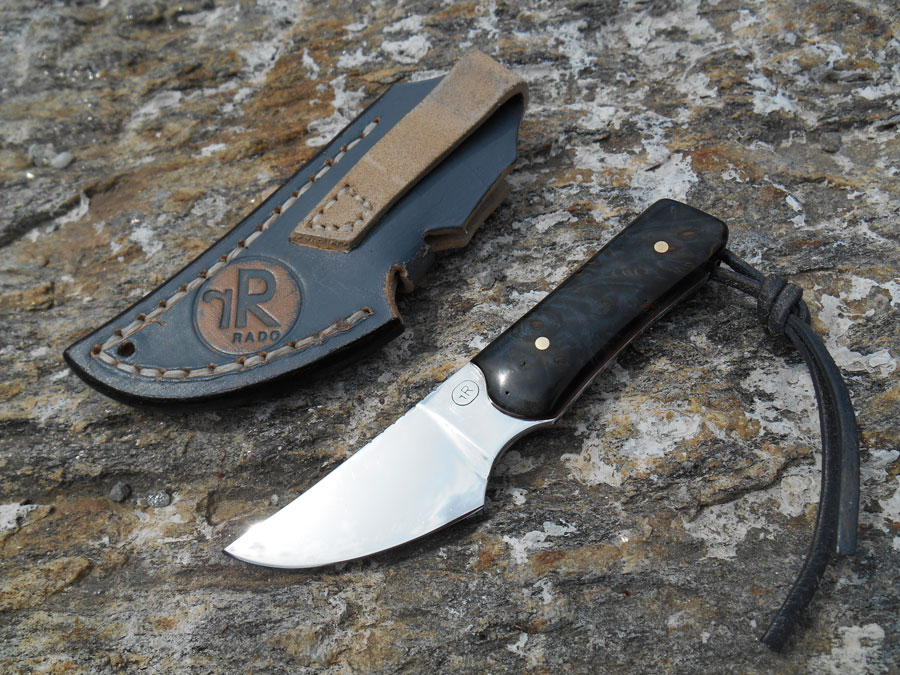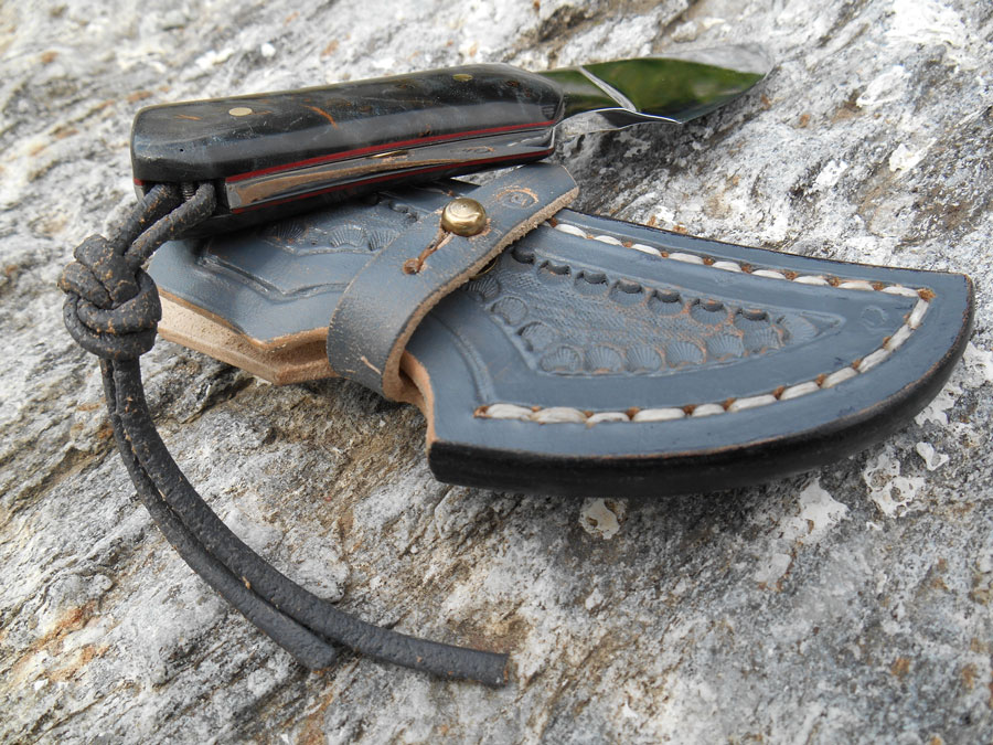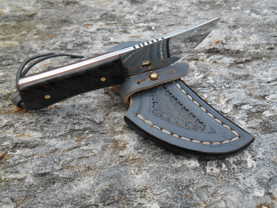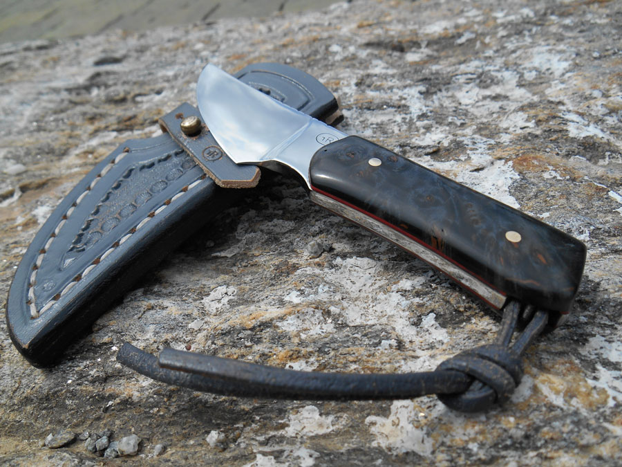 Duzina nozica; 128 mm.Duzina sjeciva; 65 mm, debljina max. 3.8 mm i visnina max. 27 mm.Celik; C70.Drska noza stabilizivano drvo, Box Eledr, vulkan fiber crveni i mesingane osovicnice.Futrola rucno radjena od biljno stavljene koze.